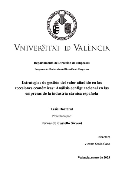 Estrategias del valor añadido en las recesiones económicas: análisis configuracional en las empresas de la industria cárnica española. Tesis de Fernando Castelló-Sirvent. Universitat de València 2023.