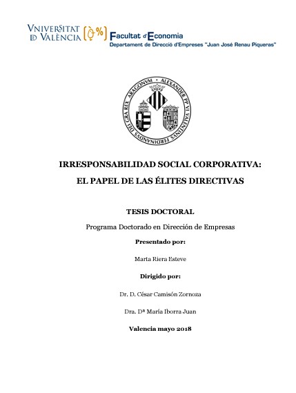 Irresponsabilidad social corporativa: el papel de las élites directivas. Facultat d’Economia, Universitat de València. Marta Riera. 2018.