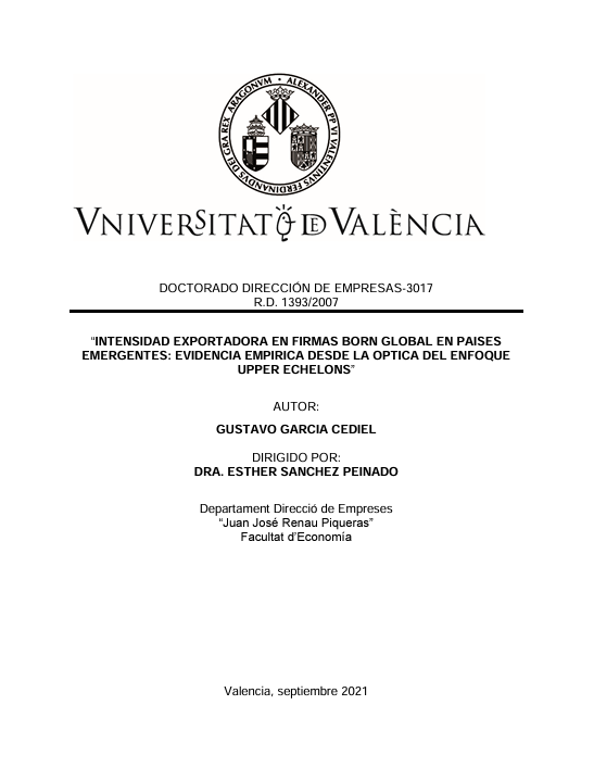 Relación entre las características de directivos en start-ups y la intensidad exportadora de estas empresas. Gustavo García. 2021.