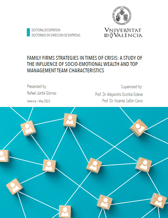 Famiy firms stratgies in times of crisis: a study of the influence of socio-emotional wealth and top management team characteristics. Tesis de Rafael Jordá. Universitat de València 2023.