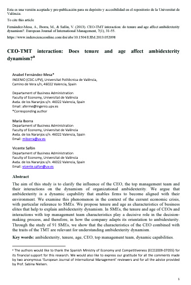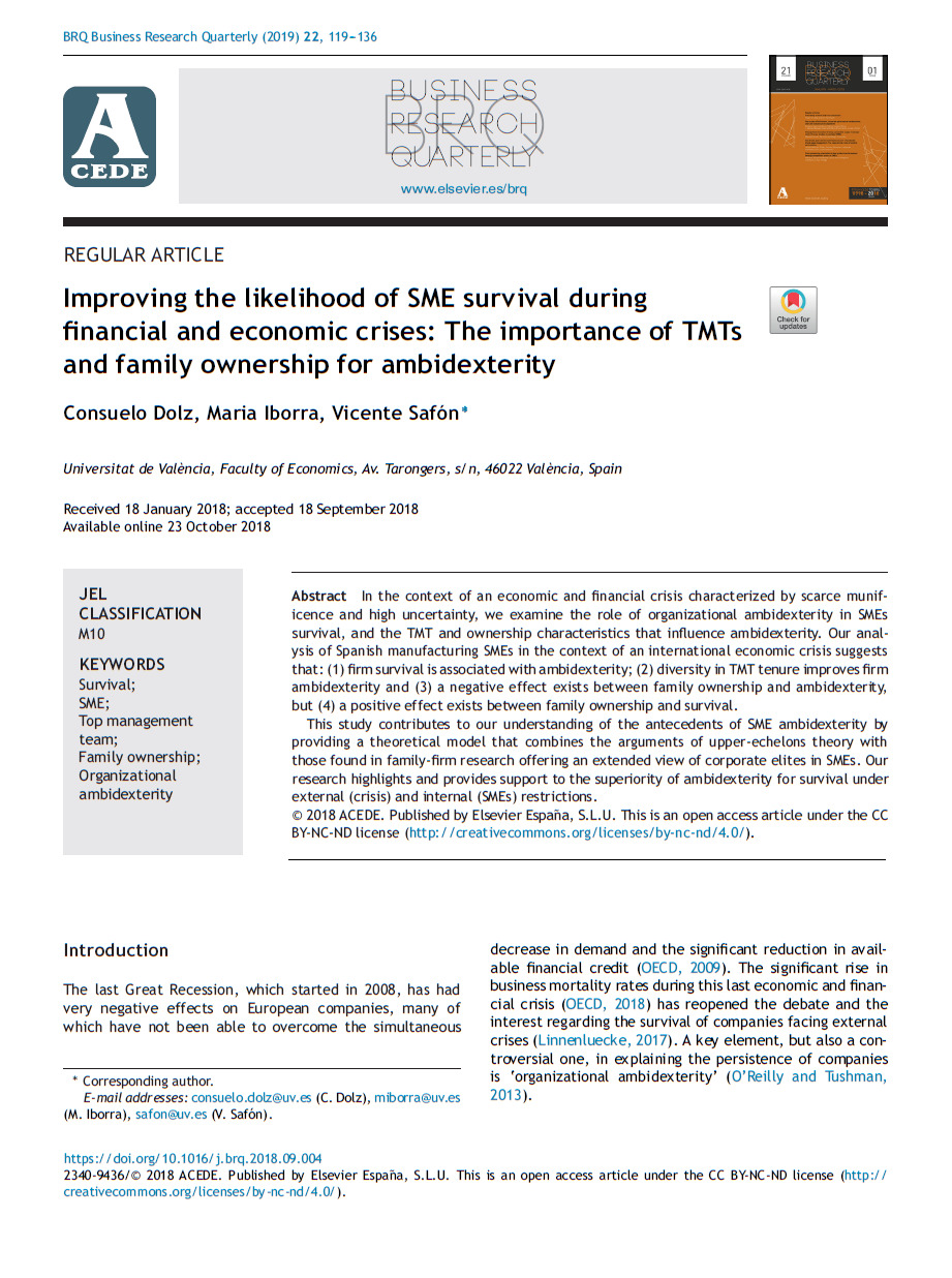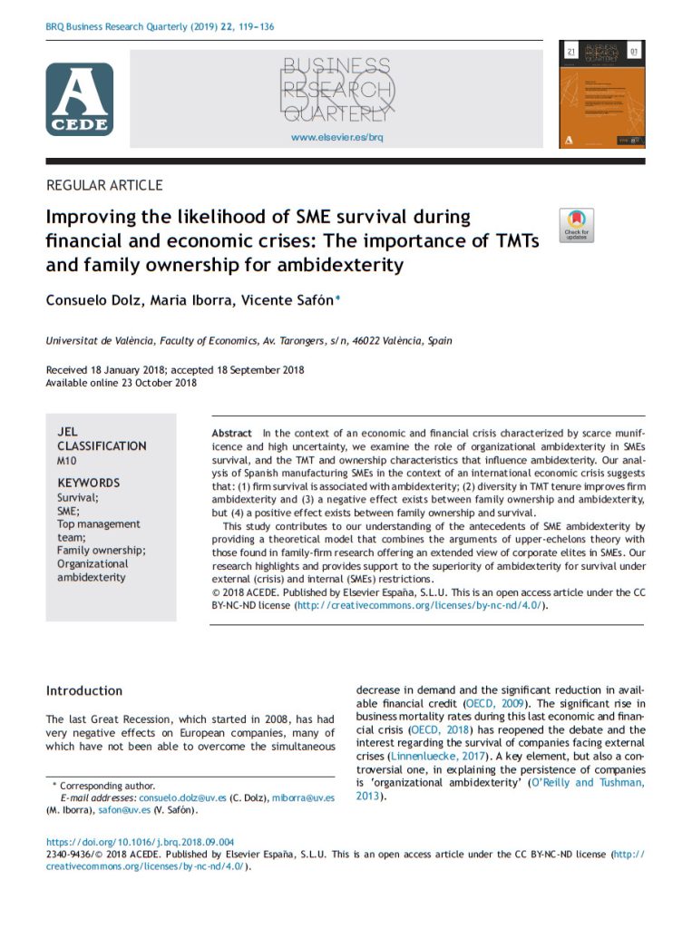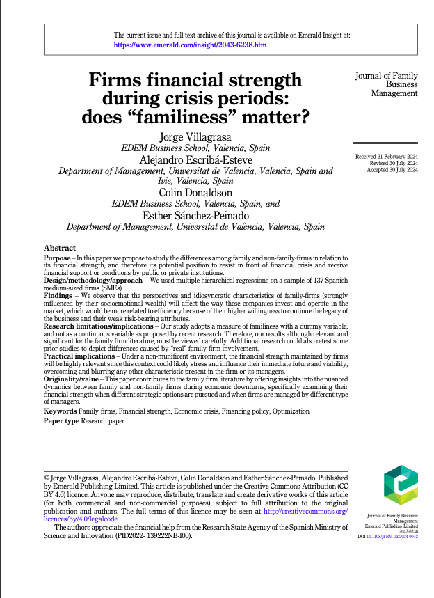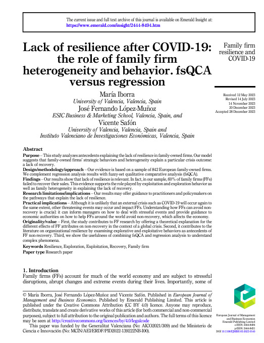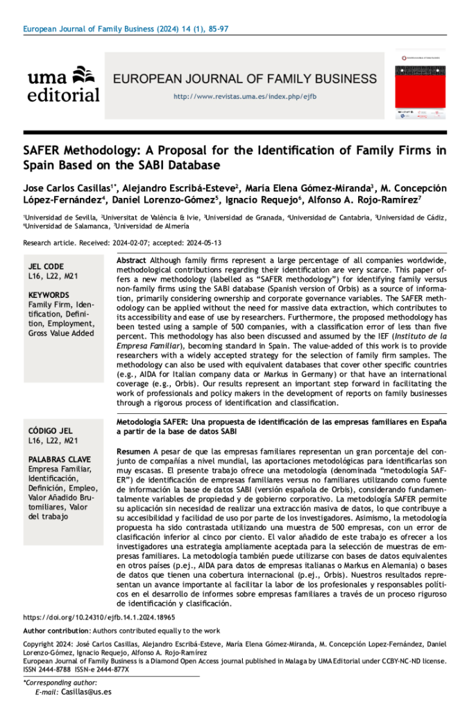 Jose Carlos Casillas, Alejandro Escribá-Esteve, María Elena Gómez-Miranda, M. Concepción López-Fernández, Daniel Lorenzo-Gómez, Ignacio Requejo & Alfonso A. Rojo-Ramírez. 2024. SAFER Methodology: A Proposal for the Identification of Family Firms in Spain Based on the SABI Database, European Journal Of Family Business